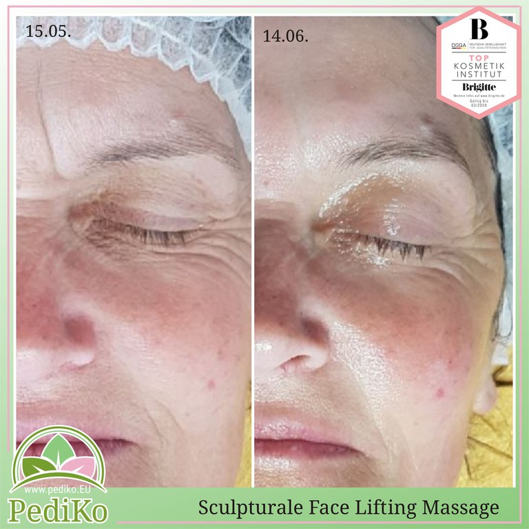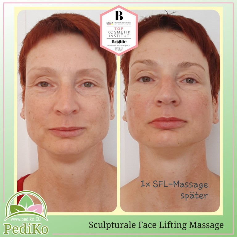 Es tritt eine Stimulation der Produktion von körpereigenem Collagen und Elastin ein und evtl. Schwellungen sowie Lymphstauungen gehen deutlich zurück oder verschwinden komplett und die Straffung des Gesichts verbessert sich spürbar.